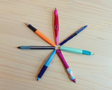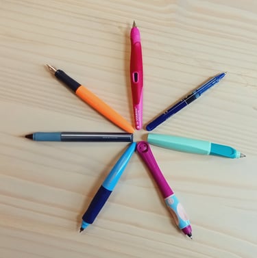 Une séance est consacrée à l'essai de différents stylos afin de trouver celui qui convient le mieux à l'élève. Mais avant cela, tout le travail est réalisé avec un crayon à papier fourni.